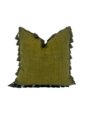 Green Herringbone Fern Fringe Fancy Decorative Pillow
