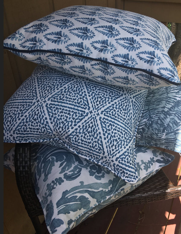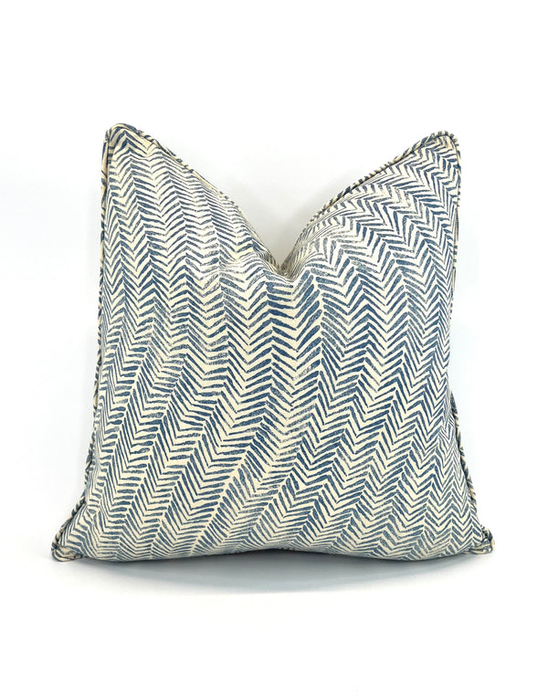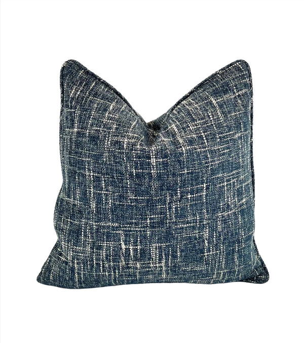 Decorative Pillow Cover in Blue Variegated Chenille with Cream - Limited Quantity