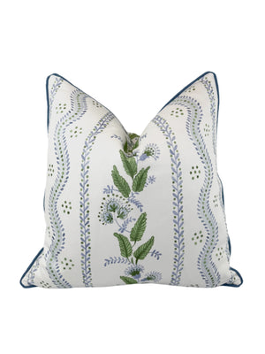 Cornflower Blues & Greens Vine Decorative Pillow or Bolster