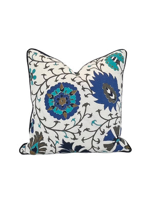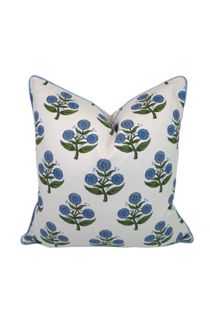 Blue Mughal Hydrangea Flowers in a Decorative Pillow or Bolster