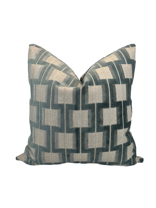 Powers Seaglass Lattice Velvet Heavy Duty Upholstery Fabric in a Decorative Pillow or Bolster