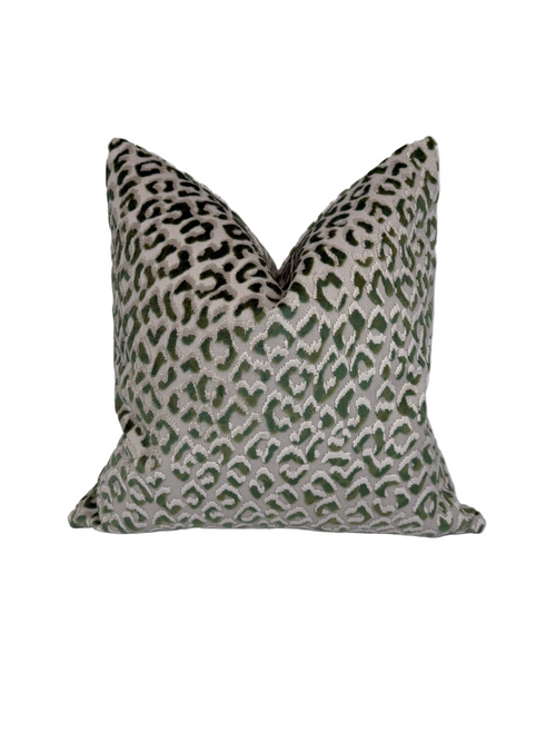 Magnolia Lyric Fern Green Leopard Upholstery Fabric in a Decorative Pillow or Bolster