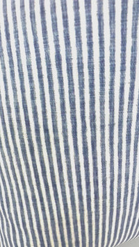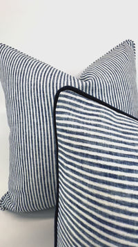 Ticking Stripe Pillow Cover in Dusty Blue and White on Woven Fabric