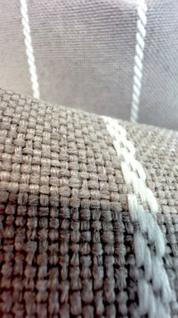 "Stay stylish and worry-free this Nautical Pencil Stripe Fabric Decorative Pillow. Made in the USA, this fabric is PFAS chemical-free, stain-resistant, and can even be cleaned with household bleach. Perfect for kids and the upcoming holiday season, this on-trend neutral and brown striped fabric will keep your home looking stylish and clean!"